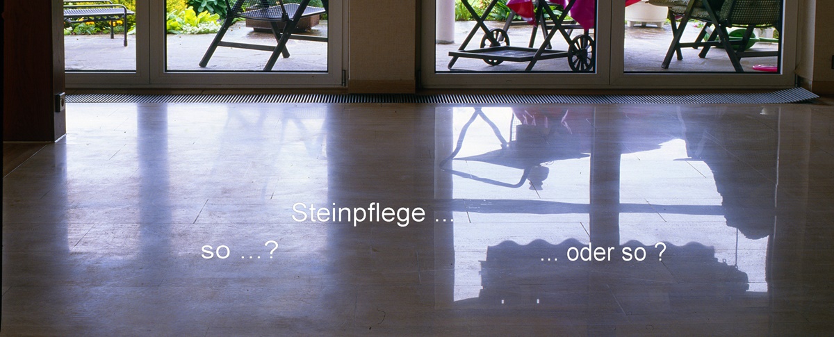 Neu eingebaute Steinflächen müssen gelegentlich von Bauschmutz befreit werden. Bestehende Steinflächen sind nur oberflächlich verschmutzt ! Die Stein-Substanz darunter ist nach wie vor "guter" Naturstein, den man nur gelegentlich richtig reinigen, und ggf. neu polieren muss.